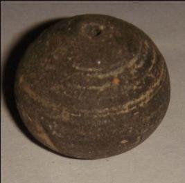 | Description / विवरण | Perforated terracotta bead, biconvex in shape, striation marks at the centre of the body. |