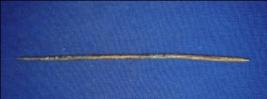 | Description / विवरण | Long Antimony rod, having a groove at upper end to insert a string. The lower end is painted. It is a tool for stitching. |