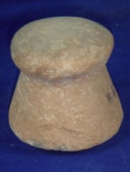 | Description / विवरण | Terracotta potter s tool with a flat rough circular base and tapering narrow grip which is flat and circular. |