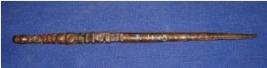 | Description / विवरण | Long copper Antimony rod may be used as hair ornament. On top it has decorated patterns. In lower part the tip is pointed and cylindrical. |