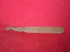 | Description / विवरण | It is a paper knife with semi circular edges and fish shaped design on the handle. |