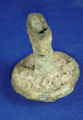 | Description / विवरण | Broken copper stand object in fragile condition. Hollow rod inserted into a circular thing form its centre. |