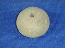 | Description / विवरण | Coarse, plain terracotta bead having betel nut body and flat base. It has a perforated hole in the centre. |