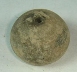 | Description / विवरण | Perforated hole terracotta bead, betel nut in shape, the base has slight depression and the body is rubbed off. |