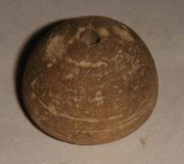 | Description / विवरण | Perforated terracotta bead, betel nut, in shape having striation marks on body and base. |