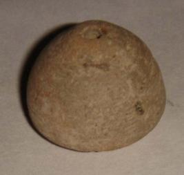 | Description / विवरण | Perforated terracotta bead, betel nut in shape having striation marks on base. |