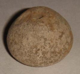 | Description / विवरण | Perforated terracotta bead betel nut in shape, having rough surface with slight depression at base. |