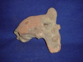 | Description / विवरण | Fragment of a terracotta horse, only the head part is visible, part of a rein is visible. Rest part of the body is missing. |