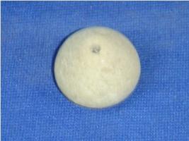 | Description / विवरण | Small, plain terracotta bead, betel nut body with flat base. It is semi fine and has a perforated hole in the centre. |