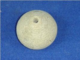 | Description / विवरण | Small terracotta bead with betel nut body and flat base. It has perforated hole in centre and surrounded with striation marks. |