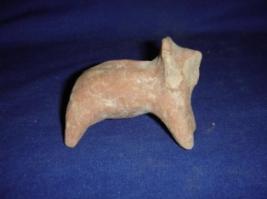 | Description / विवरण | Terracotta figurine of a lion, the head of which is missing and one hind limb is broken. The mane and the spinal cord of the figure is seen. |