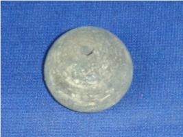| Description / विवरण | Small terracotta bead with betel nut body and flat base. It has perforated hole in centre and surrounded with striation marks. |