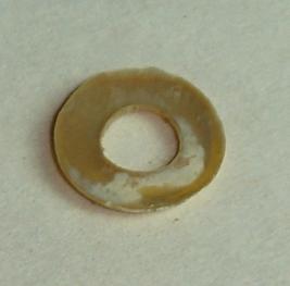 | Description / विवरण | Flat, perforated shell bead. |