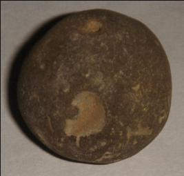 | Description / विवरण | Plain, spherical terracotta bead with a perforated hole in the centre. A part is slightly chipped off. |
