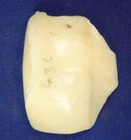 | Description / विवरण | Fragment of broad ivory bangle without any decoration. There is a hole on one side. There is an irregular piece out of the rim. |