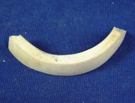 | Description / विवरण | Fragment of an ivory bangle without any decoration. It has thick rim and cuts in the inner side of rim. |