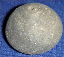 | Description / विवरण | Small terracotta bead with betel nut body and flat base. It has perforated hole in centre and surrounded with striation marks. It is semi fine and has a depression at base. |