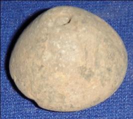| Description / विवरण | Plain conical bead with a transverse perforated hole in the centre. The base is flat and slightly chipped off. |