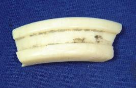 | Description / विवरण | Fragment of an ivory bangle having ridges on both sides and inner portion is plain. |