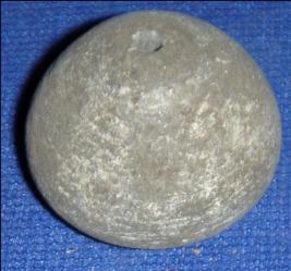 | Description / विवरण | Small terracotta bead with betel nut body and flat base. It has perforated hole in centre and surrounded with striation marks. It is semi fine and has a depression at base. |