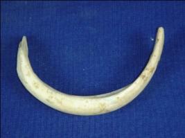 | Description / विवरण | Fragment of an ivory bangle. It is plain with scratch marks at an end. Inner rim is crudely finished. Insect attack is there. |