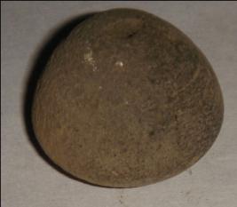 | Description / विवरण | Small terracotta bead with betel nut body and flat base. It has perforated hole in centre and surrounded with striation marks. It is semi fine and has a depression at base. |