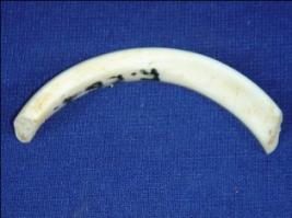 | Description / विवरण | Fragment of an ivory bangle, plain and without any design and decoration. One corner, there is a small hole on it. |