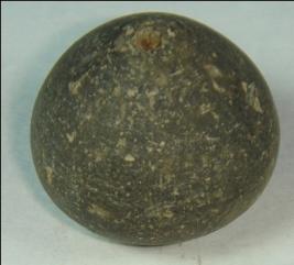 | Description / विवरण | Small terracotta bead with betel nut body and slightly oval base. It has perforated hole in centre and surrounded with striation marks. It is semi fine. |