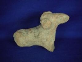 | Description / विवरण | Terracotta animal figurine of a ram whose horns are coiled. It has an elongated mouth but its front part is broken. Fore limbs are half broken and missing. Other features like eyes and nose is rubbed off. |