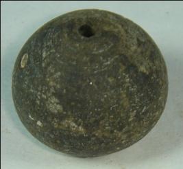 | Description / विवरण | Simple, biconvex terracotta bead with a perforated hole in the centre. The lower end has a depression and the surface of the upper body is slightly flaking off. |