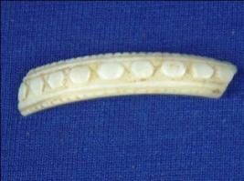 | Description / विवरण | Fragment of ivory bangle having some incised dots designs in outer rim. |