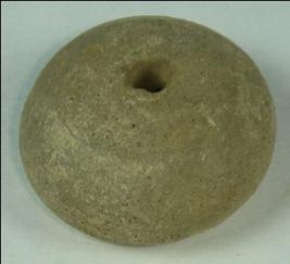 | Description / विवरण | Low, round terracotta bead with a perforated hole in the centre. The upper body has a mild carination and the base has a circular depression in the centre. |