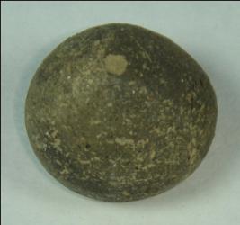 | Description / विवरण | Plain, spherical terracotta bead with a perforated hole in the centre. The lower part has a circular depression in the middle. |