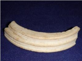 | Description / विवरण | Fragment of a shell bangle with embossed line design on the rim. |