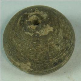 | Description / विवरण | Simple, perforated terracotta bead, betel nut in shape with flat base. It has concentric circles all over and slightly chipped off at few places. |