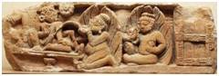 | Description / विवरण | This image tells the birth story of Kartikeya kumara . Siva is present and Parvati is in sayana pose at back side of Siva . Agni is collecting the vital fluid. A door frame is visible which show a house. |