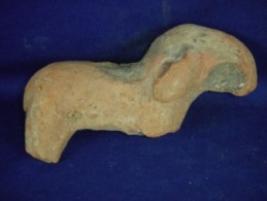 | Description / विवरण | Terracotta elephant figurine, all the four limbs are missing. The ears are prominent but eyes are not visible. The trunk is also partly seen and tusks are missing. The figure is in standing position. |