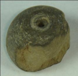 | Description / विवरण | Well made, perforated terracotta bead, betel nut in shape with a depression at the base. It is almost broke. |