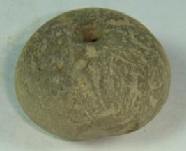 | Description / विवरण | Perforated terracotta bead, betel nut shape with a slight depression on the body. |