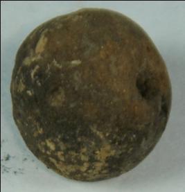 | Description / विवरण | Terracotta bead, in ball shaped but totally mutilated. There is a perforated hole in the centre to put it in a string. |