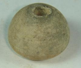 | Description / विवरण | Ill fired, perforated terracotta bead, betel nut shape with a slight depression on the base and concentric circles are prominent on the body. |