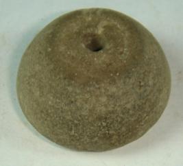 | Description / विवरण | Perforated terracotta bead, betel nut shape with a flat circular base and striation marks are seen on the body. |