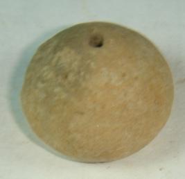 | Description / विवरण | Perforated terracotta bead, betel nut in shape with flat circular base where concentric circular are visible. |