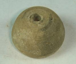 | Description / विवरण | Perforated terracotta bead, betel nut shape with a slight depression on the base. |