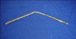 | Description / विवरण | Copper Antimony rod tapering round end. There is a deep bend is the middle forming V shape. Probably used as a tool. |