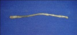 | Description / विवरण | Copper Antimony rod with tapering round end on side. The other side is broken. Weather affect is there. Probably used as a tool. |