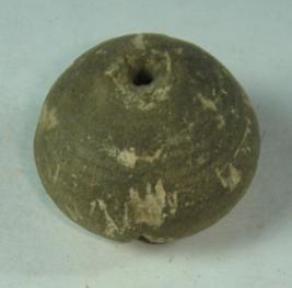 | Description / विवरण | Perforated terracotta betel nut shaped bead with a slight depression on the base and striation marks are not clearly visible. |