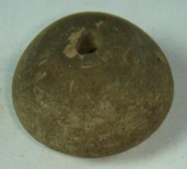 | Description / विवरण | Perforated terracotta betel nut shaped bead, with a slight depression on the base and concentric circles are clearly visible on the body. |