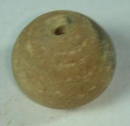 | Description / विवरण | Perforated terracotta betel nut shaped bead with a slight depression at the base while the surface is plain. |