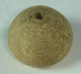 | Description / विवरण | Perforated terracotta betel nut shaped bead, with a slight depression on the base. the striation marks are not clearly visible. |